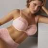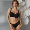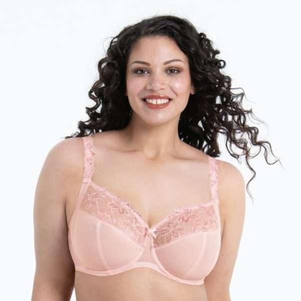 Partea superioara a cupei este din dantela elastica in doua tonuri, care se adapteaza frumos formei bustului, in timp ce partea inferioara ofera stabilitate si control. Cadrul complet si spatele stabil ajuta la distribuirea corecta a greutatii.