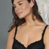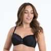 Cupele din trei parti ajuta la asezarea frumoasa a bustului. Dantela elastica in doua tonuri din partea superioara adauga un detaliu delicat si modern.